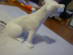 Certo l'idea mi é subito piaciuta ma come lo faccio un cane? Mai fatto un animale in vita mia, ed i canoni sono certamente molto diversi dall'anatomia umana. Cosi' come faccio sempre mi sono messa a studiare sul web, sia le proporzioni ed eventualmente un tutorial che mi aiutasse nell'impresa. Dopo diversi giorni e diverso materiale acquisito mi sono imbattuta in una ragazza che realizza con paste polimeriche splendide miniature fra cui diversi tipi di animali cani compresi. I suoi video sono molto belli e ben fatti ed in particolare mi sono innamorata del suo piccolo cucciolo Golden